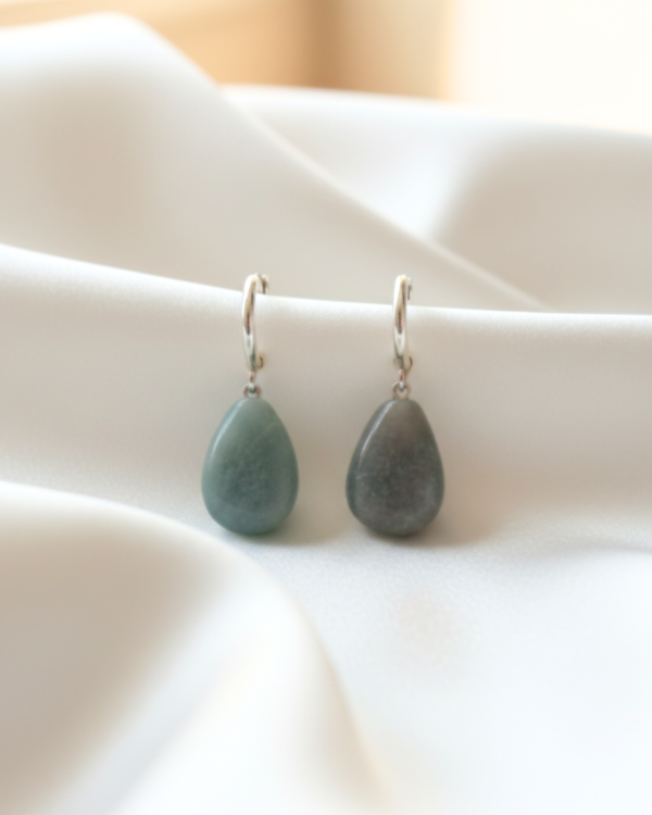 Estos aros de cuarzo azul Paraíba destacan por su tonalidad suave y serena, evocando calma, claridad y armonía interior. Su diseño en forma de gota y al ser de acero blanco los convierte en un accesorio delicado, luminoso y atemporal, ideal para acompañar tanto looks diarios como ocasiones especiales.