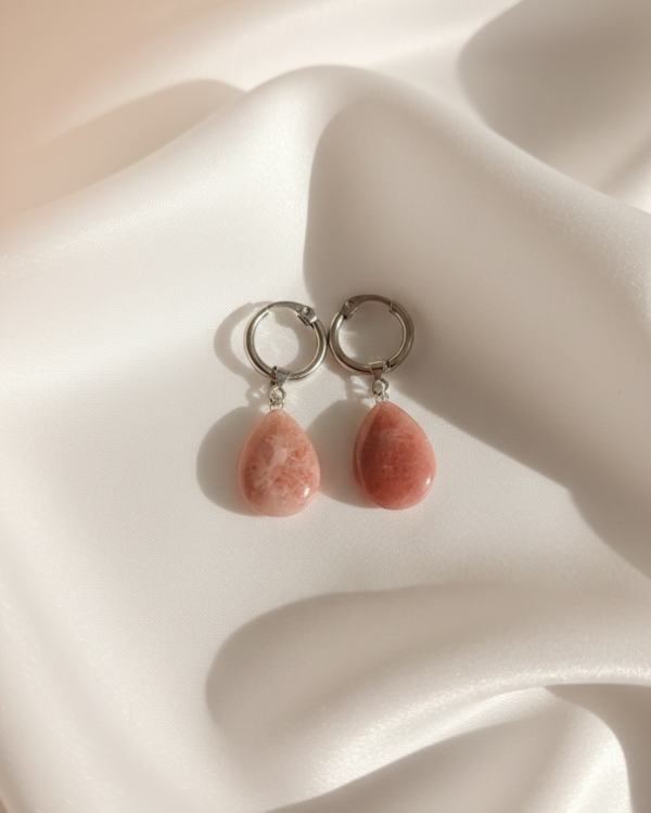 Estos aros de cuarzo rojo, también conocido como cuarzo cherry, se destacan por su tonalidad cálida y vibrante, símbolo de energía vital, motivación y pasión por la vida. Su diseño en forma de gota, acompañado de acero blanco, aporta un equilibrio perfecto entre elegancia, presencia y fuerza energética.