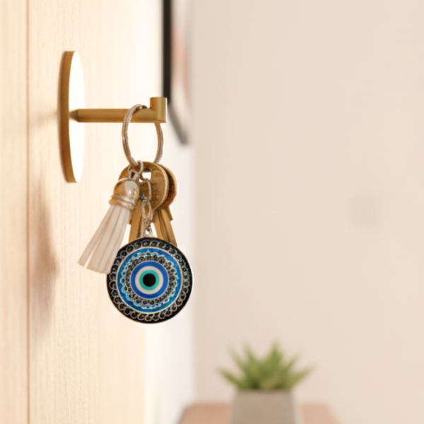 Este llavero de Ojo Turco es un amuleto clásico de protección que ayuda a bloquear energías negativas, envidias y vibraciones densas. Su diseño práctico te permite llevarlo siempre con vos: en tus llaves, mochila, cartera o incluso en el auto.