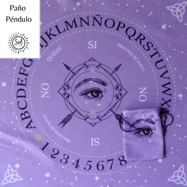 Paño para péndulo de tela poliester estampada lavable de 45x45cm Incluye bolsa para péndulo con el mismo estampado.
