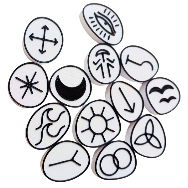 Runas brujas realizadas en pvc. Incluye bolsita dorada